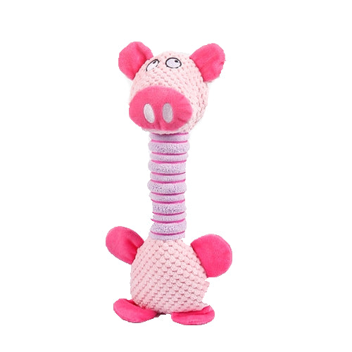 Squeaky Long Neck Plush Dog Toy - Pink Pig